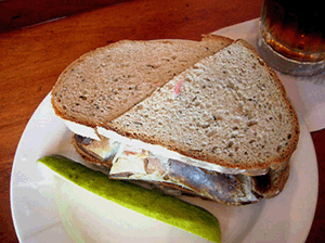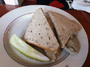2012 TASTE: ![]() PRESENTATION: ![]() AMBIENCE: ![]() ![]() The hearty, oval rye bread has been replaced by pale slices of square bread that, for my order, was lopsidedly halved and seemingly forgot its sauerkraut companion. So much very German precision. |