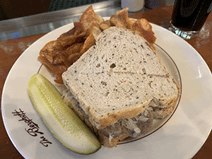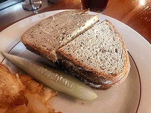 2021 TASTE: ![]() ![]() PRESENTATION: ![]() AMBIENCE: ![]() ![]() Unsliced, off-kilter rye bread slices reveal nothing about what lurks between, haplessly observed by a disapproving mustard packet. But after a year of Covid lockdown, the sandwich satisfies like it's 2006. Braaap! |