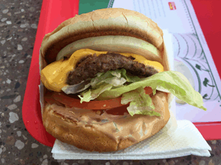 In-And-Out TASTE: ![]() ![]() ![]() PRESENTATION: ![]() ![]() ![]() ![]() AMBIENCE: ![]() ![]() ![]() ![]() Perhaps the most ballyhooed fast food sandwich on the planet, In-And-Out's signature burger features a patty that is never frozen, made to order, and virtually tasteless. What sets the sandwich apart is a stunning presentation that reveals a smorgasboard of fresh ingredients and special sauce that makes for a decent dining experience for only a couple bucks. The generally spotlesss atmosphere, open layout of the stores, and enthusiasm of employees ain't too bad either. |