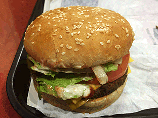 Jack In The Box TASTE: ![]() ![]() PRESENTATION: ![]() ![]() ![]() AMBIENCE: ![]() ![]() Common around Chicago in the 1970s, Jack in the Box's attractive Jumbo Jack burger remains its de rigueur menu item. Like its competitors, the patty is almost tasteless save for the trimmings and special sauce. The ambience is comensurately bland, the chain having dumped the endearing images of its namesake clown years ago. Instead, Jack In The Box stores are characterized by groovy earthtones that seem more depressing than upscale, which makes the nearly $5 burger price that more unstomachable. |